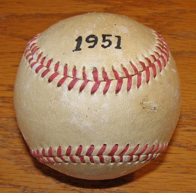 16. 1951 Reach Baseball. Reach. The Reach labeling is extremely faint. Likely a pro ball. Has 1951 written in foutain pen. Nice ball with light labeling. Nice clean game used ball. Ex+ $30