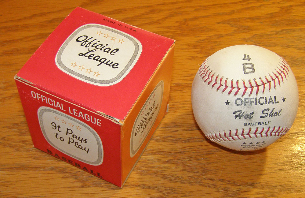 20. 1950's-60's 4B Hot Shot Official League Baseball with Box. 4B Hotshot. The ball is unused. Has a small gouge on one panel. Near mint. $40