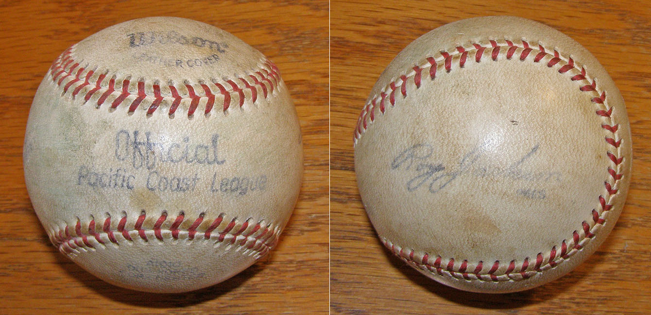 25. 1960's Pacific Coast League Game Used Baseball. Wilson A1010. Dewey Soriano president. Has light but readable labeling. Has a few small stains. Nice patina. Nice game used condition. Ex+ $40