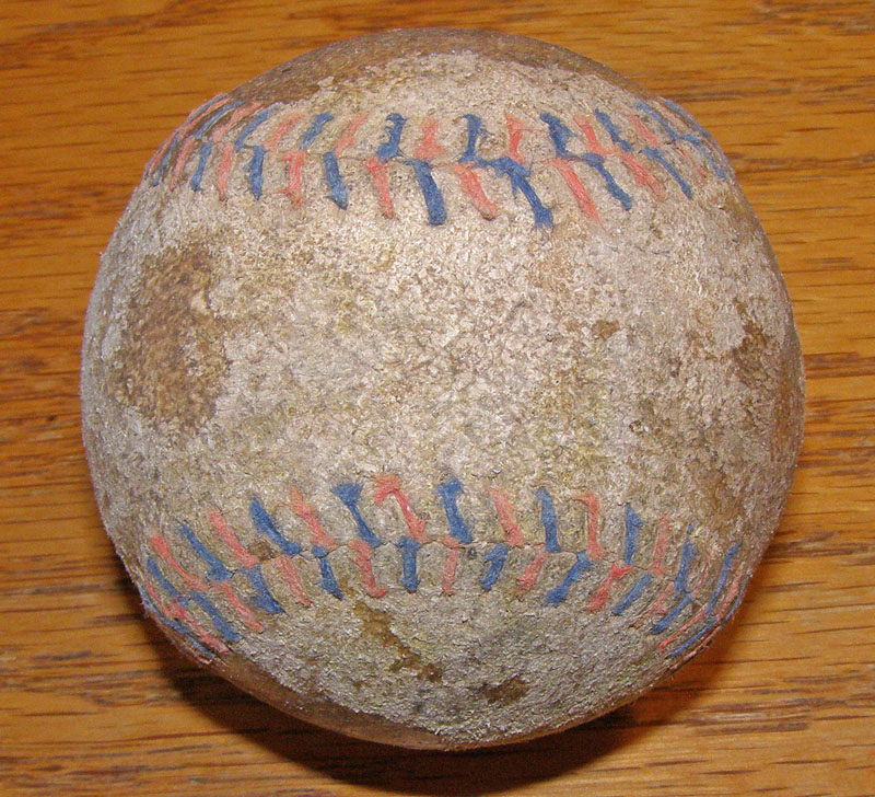 1920's-40's Baseballs 1. 1920's-30's Red & Blue Stitched Baseball. Unknown manufacturer. Has staining and less than an inch of pulled stiching. No holes, cuts or writing. Displays nicely from one side. Vg+ $75 2. 1920's-30's Red & Blue Stitched Baseball. Unknown manufacturer. Has about an inch of pulled stitching in one spot then several other pulled stitches. Displays nicely from one side. No holes, cuts or writing. Vg $65 3. 1920's-30's Bounder Baseball. Unknown manufacturer. Slightly smaller than regulation size. Has nice coated canvas or oilskin covering. Faded yellow with blue stitching. has a quarter inch gouge. No writing. Ex+ $65 4. 1920's-30's Baseball. Unknown manufacturer. Has small tight stitching indicative of pre 1920's baseballs. Nice patina. All the stitching is intact. Has scuffing but no holes, cuts or writing. Ex+ $50 5. 1930's Junior Size Baseball. Unknown manufacturer. Has a great antique dark brown (almost black) color and patina. About 2/3 the size of a regulation ball. High quality leather ball with great stitching. Very nice. Ex/Mt+ $40 6. 1935 Ford Frick National League World Series Game Used Baseball. Spalding. Has "Fouled into stands 5th game in Chicago" faintly written in fountain pen on side panel. Ball has 1935-40 labeling. Has faint labeling and light staining. Good condition with no cuts or torn stitching. Ex+ $195 7. WW2 Era 1940's Rubberized Baseball. J. DeBeer Anchor Brand. Has patent # 2,242,455 which was granted to DeBeer in 1941. One of the earliest rubberized baseballs. Has some staining and rubber deterioration. Good labeling. Vg $35 8. 1940's Spalding LL1 Little League Baseball, Mint in with Box. Spalding LL1. A very early Little League ball. The baseball is in mint condition. The original box is missing the top flaps. $45 9. 1947 MacGregor Goldsmith Baseball. MacGregor Goldsmith "Official 97 League". Nice ball with very light labeling. Has a couple of small gouges and light staining. Has 1947 written in fountain pen on the ball. Ex+ $35 10. 1940's-50's Baseball. Unknown manufacturer. Nice pro quality ball with an excellent patina. All stitching is intact with no rips or holes. Ex+ $25 11. 1940's-50's Cork Ball. Unknown manufacturer. Basically a tiny baseball. Cork Ball has been around since the 1880's and was invented in St. Louis and was a favorite childhood game of Yogi Berra among others. Has scuffing and marks but all stitching is intact with no rips or holes. Ex+ $35 Vintage Baseball Lots 12. Lot of One Dozen Vintage Baseballs. Unknown manufacturer. 1930's to 1960's baseballs. Many have nice color and patina. No significant flaws. No writing. Ex/Mt $95 13. Lot of One Dozen Vintage Baseballs. Unknown manufacturer. 1940's to 1970's baseballs. Many have nice color and patina. Several have scuffing etc... Possibly good for stage props etc.. Vg $85 14. Lot of One Dozen Distressed Vintage Baseballs. Unknown manufacturer. 1930's to 1960's baseballs. One has red & blue stitching. Most have pulled stitching. A couple have small holes. Most display okay from one side. Best and worst sides shown in photos. Many have nice color and patina. G/Vg $75 15. Pair of 1980's New York-Penn League Baseballs. Wilson A1010. Leo Pinkney President. Light labeling. Good game used condition with scuffs and marks. Both balls have nice stitching and no writing. Vg/Ex+ $30 1950's-60's Baseballs 16. 1951 Reach Baseball. Reach. The Reach labeling is extremely faint. Likely a pro ball. Has 1951 written in foutain pen. Nice ball with light labeling. Nice clean game used ball. Ex+ $30 17. 1950's MacGregor B76C Little League Baseball, Mint in Box. MacGregor B76C. Great ball, great box. Mint condition. $45 18. 1950's Spalding 178 Little League Baseball. Spalding 178. Unused ball in near mint condition. Great cream color. Nr/Mt $35 19. 1950's Wilson "Official League" Baseball with Box. Wilson A1034. Ball has use with suffs. Comes with it's original box. Ex+ $35 20. 1950's-60's 4B Hot Shot Official League Baseball with Box. 4B Hotshot. The ball is unused. Has a small gouge on one panel. Near mint. $40 21. 1950's-60's Sumiya Japanese Baseball. Amateur B.B.A. A rare ball with both Japanese and English labeling. Has spots of toning/browning. Little to no use. Ex/Mt $45 22. 1960's Joe Cronin American League Baseball. Reach. Has easily readable labeling. Nice game use. No cuts or torn stitching. Ex/Mt $65 23. 1960's Joe Cronin American League Baseball. Reach. Has light but readable labeling. Game used early 1960's ball. Nice condition with no cuts or torn stitching. Ex+ $55 24. 1960's Spalding Official League "L.A. City Parks & Rec" Baseball with Box. Spalding HH. An unused ball with it's original box. Fantastic condition. Nr/Mt $45 25. 1960's Pacific Coast League Game Used Baseball. Wilson A1010. Dewey Soriano president. Has light but readable labeling. Has a few small stains. Nice patina. Nice game used condition. Ex+ $40 26. 1960's Rawlings Mickey Mantle All-Star Baseball, Rawlings AB. Has facsimile signatures of Mickey Mantle on sweet spot plus Tony Conigliaro, Brooks Robinson, Willie Stargell, Billy Williams, Tim McCaver, Jim Lefebvre and Rick Reichardt. Has nice stitching and an labeling. Ex+ $40 27. 1960's Gillette World Series Special Baseball with Red and Green Stitching. Manufactured by Wilson. This circa 1964 baseball is the only known variation with multi colored stitching. Has facsimile signatures of Willie Mays, Felipe Alou, Juan Marichal, Jim O'Toole, Gus Triandos, Roy McMillan, Nelson Fox, Ernie Banks, Willie Davis and Willie Stargell. Light scuffs and wear. Nice condition. Ex+ $50 28. 1960's Wilson Little League Baseball. Wilson A1074. Very nice unused ball. Ex/Mt+ $30 1970's-80's Baseballs 29. 1970's Pacific Coast League Game Used Baseball. Wilson A1010. Roy Jackson president. Good labeling. Nice patina. Nice game used condition. Ex+ $35 30. 1970's Wilson Pro-Star Baseball. Wilson A1275. Very nice unused ball. Perfect labeling. Nr/Mt $25 31. 1978 San Diego Padres All