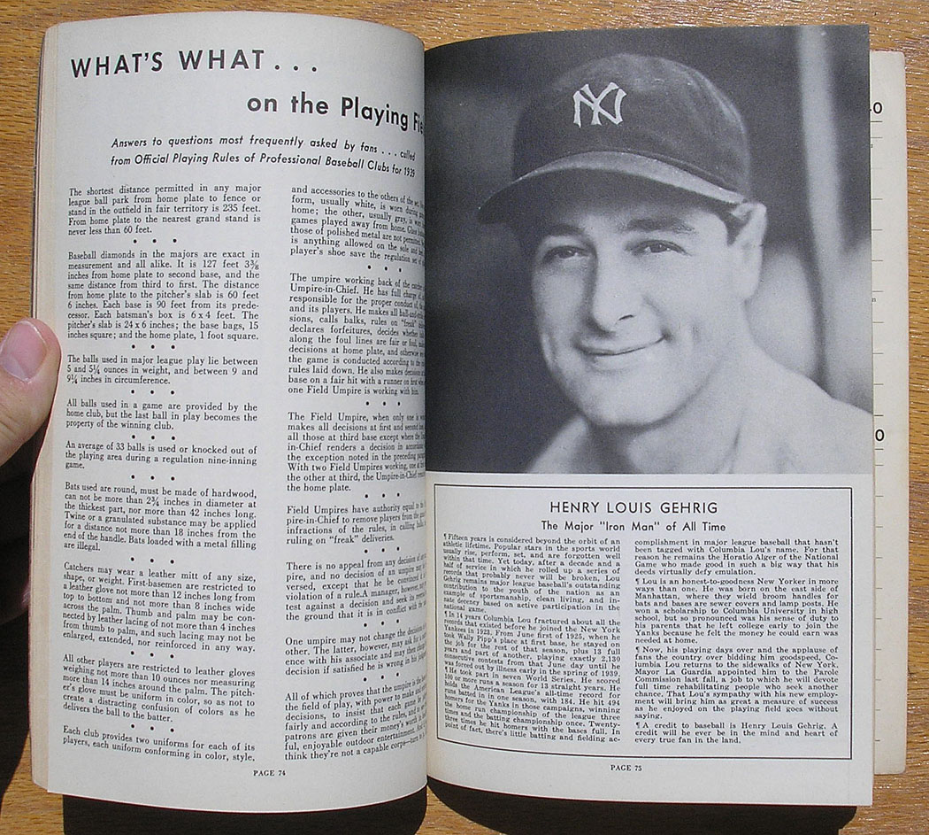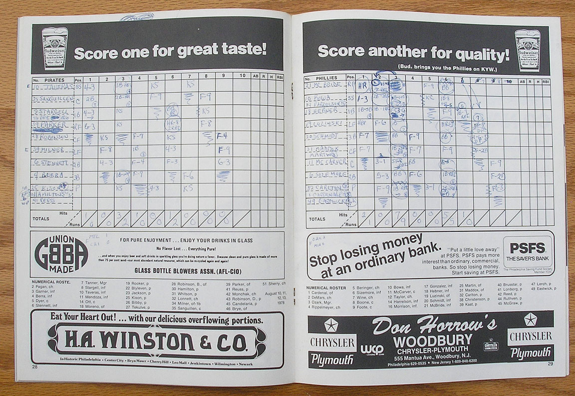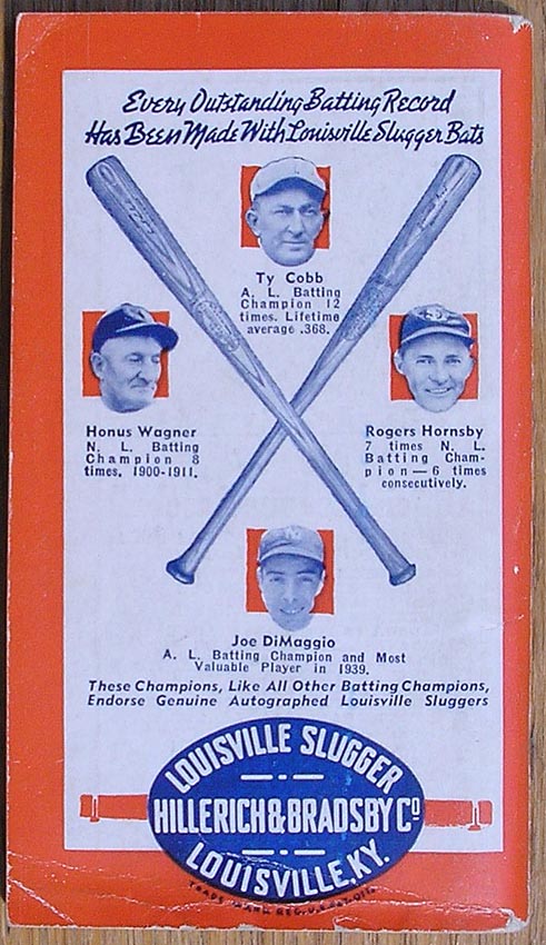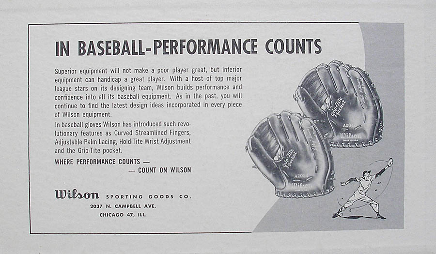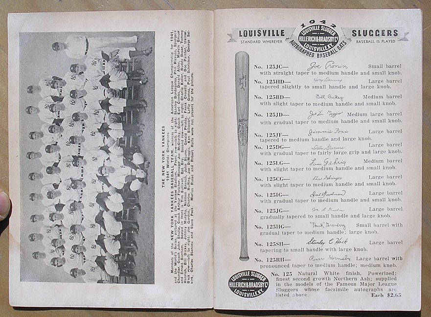 a baseball ad and a baseball glove ad. One page is scored. Very nice condition. Nr/Mt $30