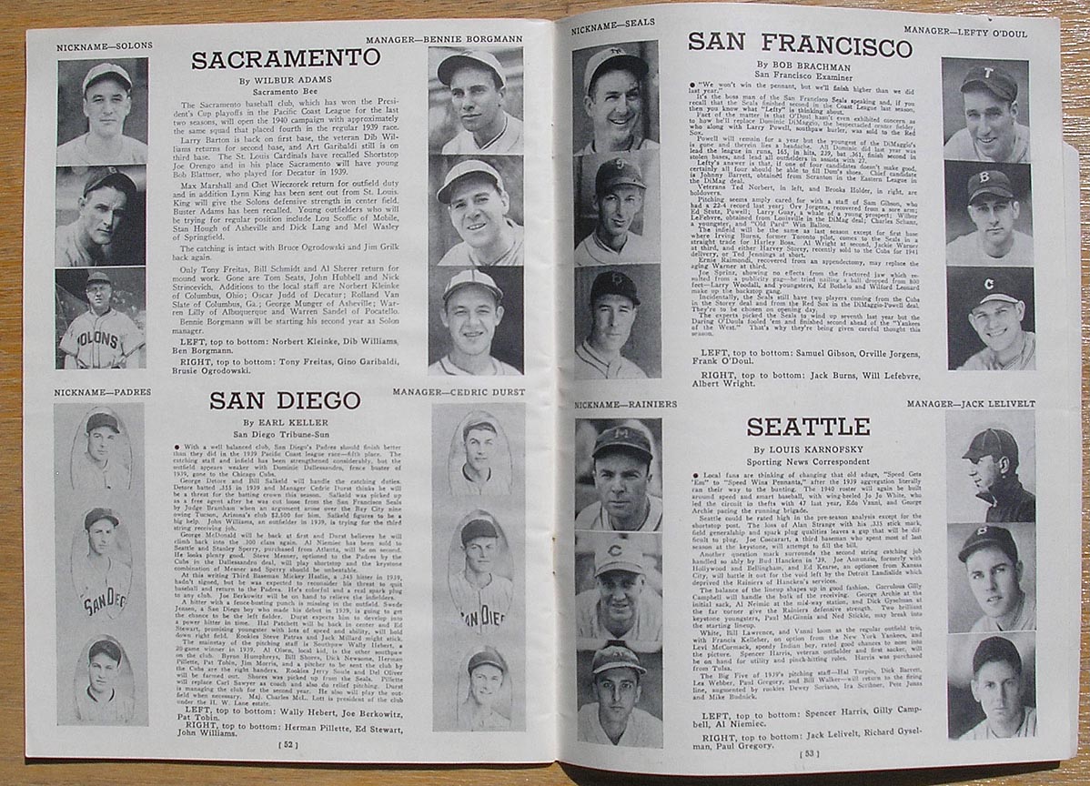 Pirates Exhibition Game Program, At San Francisco. Lefty O'Doul's Seals had Tommy